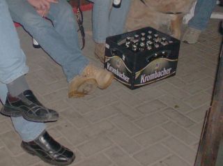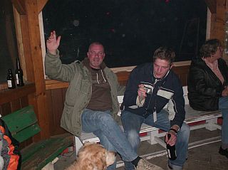 Die Münsterfahrer sind nun auch wieder da, und Julia, die eigentlich Monika heißt, muss ebenfalls ein "offenes Bein" probieren, und ruckzuck wirds Abend, und somit Zeit für den Umzug zur Hütte.