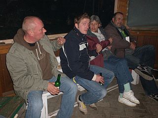 In vielen kleinen Grüppchen wirds ein lustiger Abend. Gegen Mitternacht verkriechen sich die meisten, und wie immer bleibt ein harter Kern am Feuer zurück.