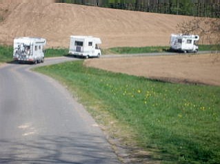 So schön dieser Abend geendet hatte, so brutal wurden wir morgens auf den Boden der Tatsache, dass wir hier tief im Odenwald sitzen und die Bauern Gülle ausbringen, zurückgeholt. Mit leicht lädiertem Schädel waren wir alle wohl sehr geruchsempfindlich und kämpften beim Duft, der langsam immer stärker zu uns heraufzog, mit Brechreiz. Nix wie weg hier, und den Besuch der wilden Weibchen verschieben wir lieber auf ein andermal.