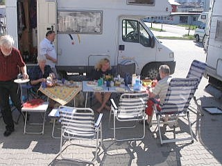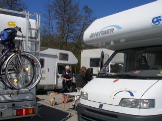 Ordentlich wie wir sind, haben wir auf nur 2 Plätzen mit 4 Womos eine Wagenburg