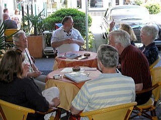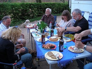 Für heute war der Spaziergang lang genug und den Besuch der Wild-Weibchen-Steine, wo der Sage nach zwei nackte Nixen - die wilden Weibchen - in den Felsen leben, haben wir auf morgen verschoben. Jetzt werden erst mal die Tische zusammengestellt