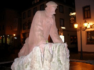 Nach einem gemütlichen Abend machten wir uns durch die Altstadtgassen, vorbei an diesem seltsamen Brunnenheiligen,