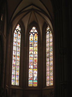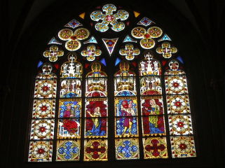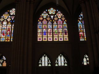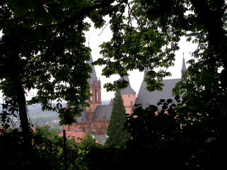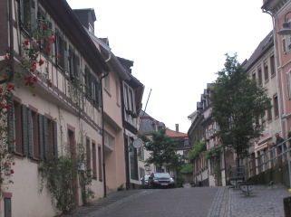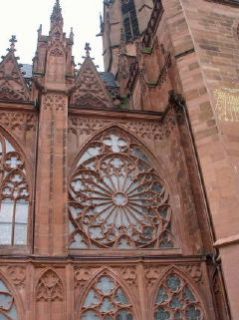 Durch die Altstadtgassen gings weiter bergauf zur Katharinenkirche, die schon bei Anreise als imposantes Bauwerk hoch oben über der Stadt zu sehen ist. Sie ist wegen ihrer Fenstermalereien berühmt und gilt als bedeutendster Kirchenbau am Rhein zwischen Straßburg und Köln. Leider passt sie nicht ganz aufs Bild und so gibts hier halt nur einen kleinen Ausschnitt.