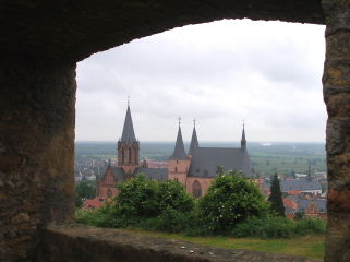 Und nochmal ein Blick auf die Katharinenkirche und weiter über die Rheinebene. Nun gings wieder bergab, vorbei am Uhrturm, der in früheren Zeiten als Zollturm diente,