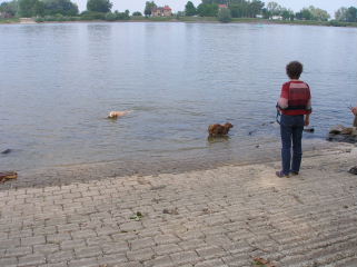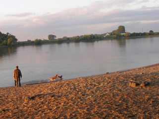 Heute Abend haben die Stellplatzchefs Gaby und Gerhard zu Weck, Worscht un Woi eingeladen und vorher machen wir noch unser ausgedehntes Hundegassi durchs Wäldchen, das uns diesmal bis zum Strandbad führt.
