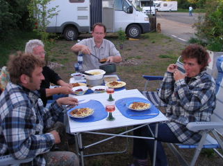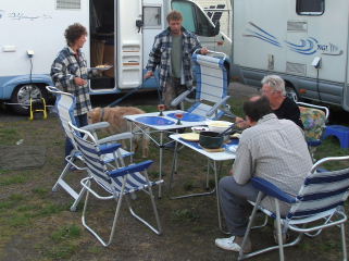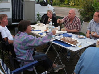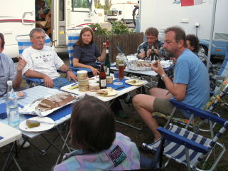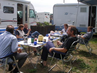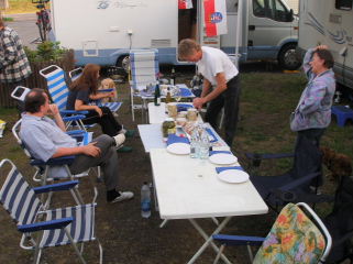 Während des gemeinsamen Frühstücks unter Bernds Markise kamen Lena und Hans-Werner an. Nun war die Wagenburg komplett.