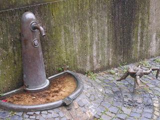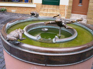 Leider mussten wir uns später belehren lassen, dass der wirkliche Krötenbrunnen als munteres Bächlein oben in den Weinbergen zuhause ist.