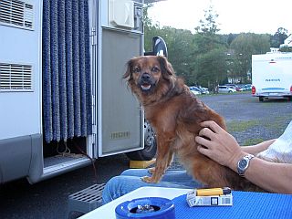 Als Zwischenmahlzeit gibts frische Brötchen mit Ajoli und Flusskrebsen, und für die Hunde als Leckerli eine übriggebliebene Hähnchenbrust vom Nachbarn, und danach bewacht Peter den Alkoven, während ich mein Buch fertig lese.