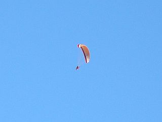 Schatten, während über uns ein motorisierter Flieger seine Kreise zieht.
