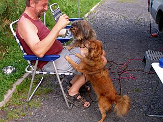 Der erste, der kapiert hat wie man relaxt, ist Bruno. Er lässt sich den Rücken kraulen.