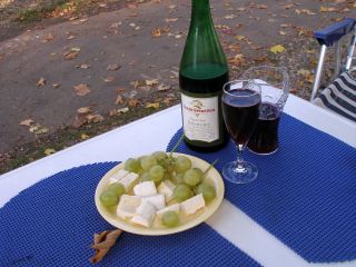 gekauften Federroten, und wir genießen die Ruhe und die Herbstsonne.