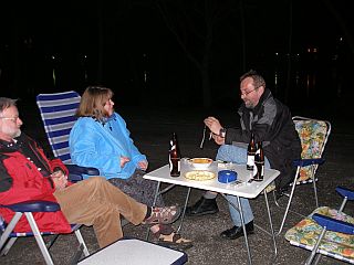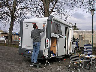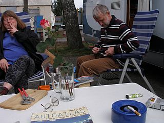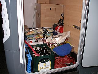 Wieder zurück auf dem Platz nehmen wir uns den Inhalt unserer nun richtig geräumigen Garage vor und genießen den Frühlingsabend zwischen den Mobilen, bevor wir uns gegen Mitternacht erstmals in unser Heckbett begeben.