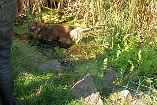 Gottseidank hat Werner keine wertvollen Kois im Teich, denn sonst hätten wir jetzt nen Versicherungsfall, denn Bruno und Lilli waren sich einig und gingen beide baden. Ist ja auch herrliches Wetter, wolkenloser blauer Himmel, wie es sich für einen Urlaubstag gehört.