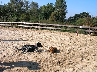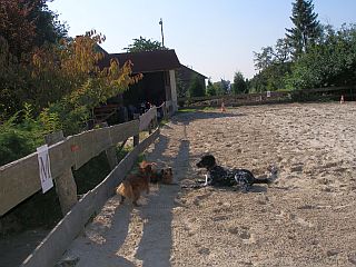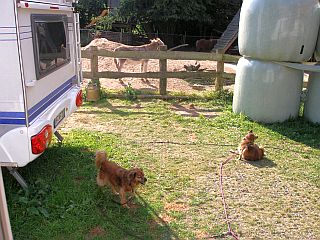 Nach dem Frühstück (mit frischgebackenen Brötchen von Werner) fügen wir uns in das fröhliche Treiben auf dem Hof ein und auch die Hunde haben ihren Spaß.