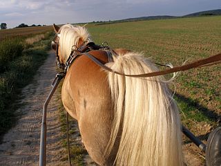 Spurrillen kenn ich ja schon von der Autobahn, aber hier sind sie tiefer und die Spur passt nicht immer. Das Ding schaukelt und ich will eigentlich aussteigen. Langsam bekommt ich doch Vertrauen zu dem Gefährt und Werner zeigt uns im Wald den Wendekreis der Kutsche und das Zusammenspiel zwischen Kutscher und Pferd, indem er um die Bäume kurvt. Inzwischen hab ich festgestellt, dass man im Stehen besser klar kommt, und werde langsam mutiger. Hab zwar schon gehört, dass es Glücksgefühl verschafft, wenn Adrenalin ausgestoßen wird, aber noch bin ich skeptisch. Bevor ich jetzt die ganze Kutschfahrt schildere, sag ich einfach mal, dass es ein tolles Erlebnis war, ich froh bin, dass ich sowas mal erleben durfte und sogar der Spaß die Angst besiegt hat. Tolles Gefühl. Schee wars. Hier nochmal danke an Werner und natürlich auch an den durchgeschwitzen Marco.