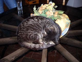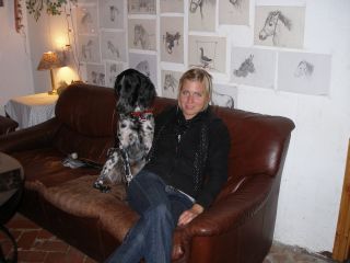 Den Abend verbringen wir mit Werner und Birgit und den beiden Lehrkräften der anwesenden Schulklasse am warmen Ofen in der urgemütlichen Deel. Ayla, die ich ja von Bildern aus dem Forum schon kenne, hat sich zu einer prächtigen Dame mit einer gewaltigen Schulterhöhe entwickelt, und sie strotzt vor Übermut und hat keinerlei Berührungsängste. Sie hat uns feuchtschmatzend und liebevoll in ihr Rudel aufgenommen. Auch Kater Garfield scheint mich mögen, und irgendwann nach Mitternacht fallen meinem Peter die Augen fast zu.