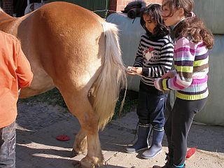 Den Hof haben wir gleich gefunden und unsre Hunde werden von den Kindern auf dem Hof gleich gebührend verhätschelt. Scheinbar machts auf Kinder ordentlich Eindruck, wenn man zwei die gleichen an einer Leine hat. Julia bezieht ihr Zimmer und Peter zeigt dem Knavanti, wo er nun die nächsten Tage verbringt, also direkt neben dem Streichelzoo, was unsre Hundis natürlich freut. Und endlich gibts Abendessen, und wir stärken uns erst mal nach der langen Fahrt.