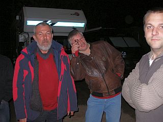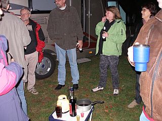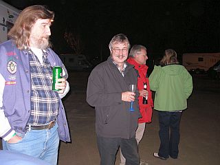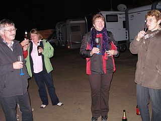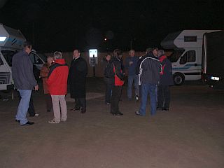 Pappsatt nehmen wir auch heute wieder unser Absackerchen zwischen den Womos, aber alle sind nicht mehr so fit wie gestern, und es wird heute nicht so spät. Schee wars trotzdem.