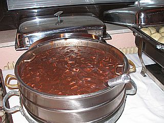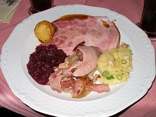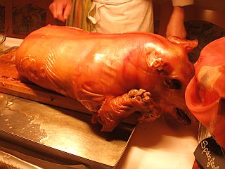 danach fallen wir übers gefüllte Ferkel her.