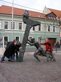 Nach dem Frühstück beschließen wir, uns Alzey anzusehen, denn dort waren wir noch nie. Außerdem soll es dort einen neuen Stellplatz geben, und den könnten wir uns ja mal angucken. Wiebke, Konrad und Bernd schließen sich uns an, und nach einer Ehrenrunde um Alsheim rum, landen wir tatsächlich in Alzey. Den Stellplatz finden wir aber nicht. Also machen wir nur einen Stadtrundgang: