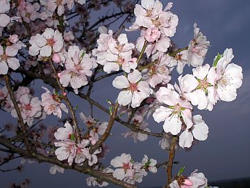 Hartmut und Mathilde sind auch schon da. Nach dem Abendessen geht Peter mit den beiden noch einen GeoCache suchen, während ich erst mal ein wenig Ordnung mache und dann natürlich noch schnell mal nach den Mandelblüten gucken muss, auch wenns gerade dunkel wird.