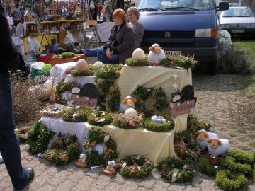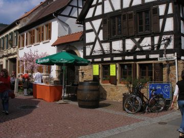 Nun sind wir in Gimmeldingen angekommen und bummeln übern Ostermarkt und durch die Gassen.
