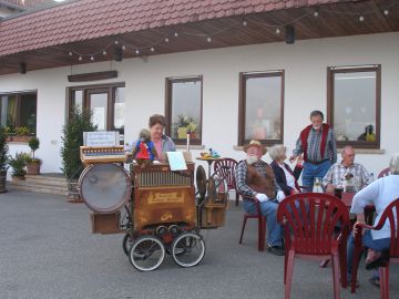 Aber noch ist der Tag nicht zu Ende. Der Leierkastenmann, den wir schon mal irgendwo getroffen haben, steht auch hier auf dem Platz und hat die Orgel ausgepackt.