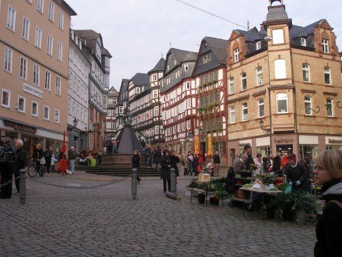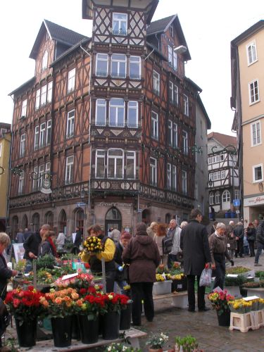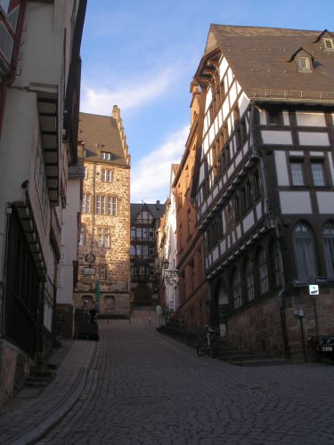Nun starten wir den Versuch, einen Cappu zu trinken. Irgendwo hab ich mal gelesen, dass Marburg eine gemütliche Stadt ist, und man sich dran gewöhnen muss, zu warten. Das haben wir nun gelernt. Im zweiten Cafe hats dann geklappt und nach ca. 10 Minuten konnten wir die Bestellung aufgeben. War aber nicht schlimm, denn es ist sehr unterhaltsam, die Leute zu beobachten. Die 80.000-Einwohnerstadt beherbergt 20.000 Studenten, und heute sind wohl alle auf den Füßen.