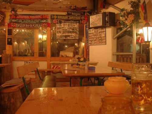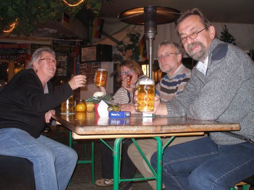 Den Abend verbringen wir in Aldis Biergarten, ein bayrisch gefärbtes Vereinslokal, teils im Zelt, teils in einer Hütte.