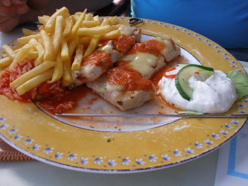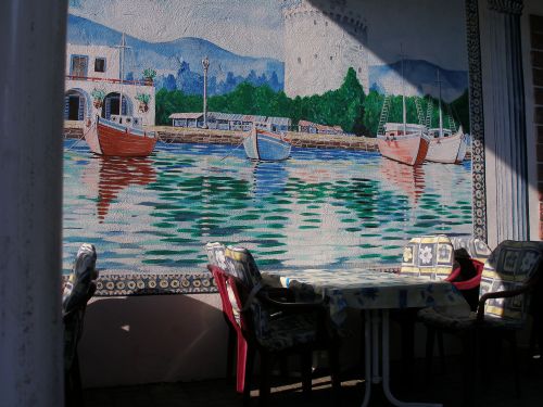 Schließlich landen wir außerhalb der Stadtmauer beim Griechen und beschließen, heute doch nicht mehr zu grillen. Wir sind nämlich recht platt von der Kurverei durchs bergige Gelände.