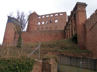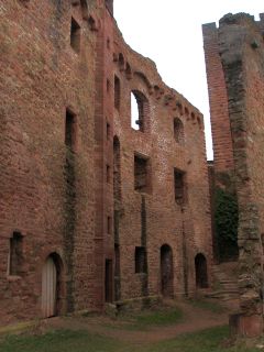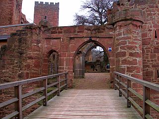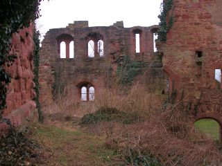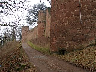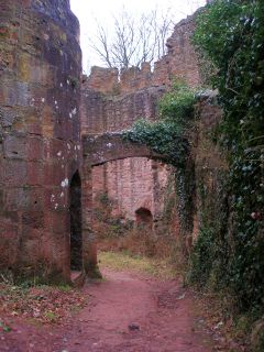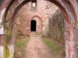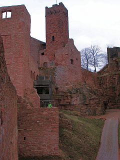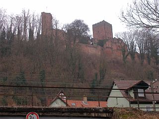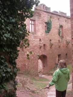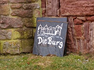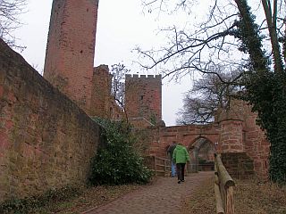Recht steil - auf den Bildern kann mans leider nicht so richtig erkennen - gehts hoch zur Ruine. Ein Schild verkündet: Sonntag Weißwurstfrühstück - das spornt uns natürlich an. Aber leider ist auch hier noch Winterpause und wir gucken uns die Ruine in Ruhe an.