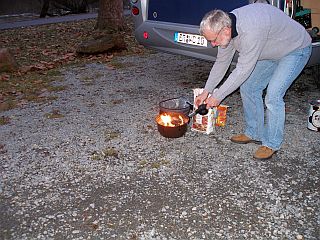 Nach einer kurzen Regenerierungspause treffen wir uns wieder draußen und Konrad wirft den Grill an.