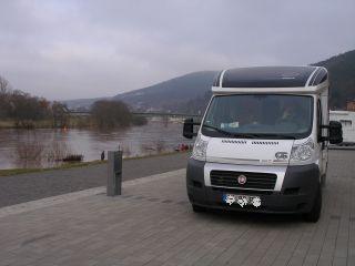 Der Parkplatz reicht gerade noch für uns, denn auch hier ist das Hochwasser inzwischen angekommen.