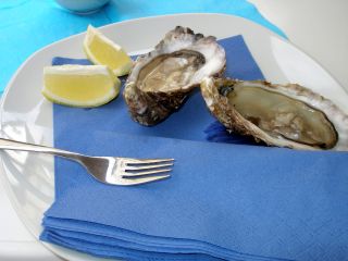 Auf dem Markt stärken sich die Männer mit fränkischer Bratwurst im Brötchen, während Wiebke und ich Austern aus der Normandie bevorzugen. Man gönnt sich ja sonst nix.