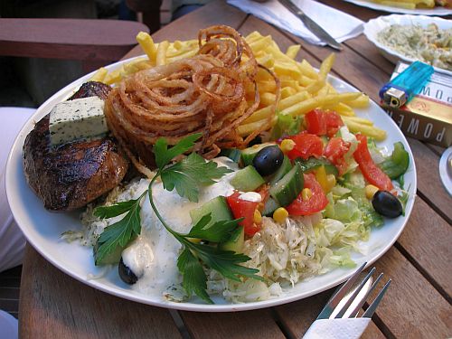 Wahnsinnsportionen. Und geschmeckt hats außerdem. Bemerkenswert war auch die Endabrechnung. Ich glaube, dass es ungefähr pro Person inkl. Getränke 10 € waren.