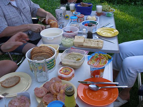 Und wieder frühstücken wir im Schatten der gemeinen Esche am Saale-Ufer bei herrlichem Sommerwetter. Noch ein wenig Schwätzchen halten, dann verbreite ich wie gewohnt gegen 13:00 Aufbruchstimmung, und kurz drauf sind wir auf der Fahrt durch den Spessart und kommen staufrei eineinhalb Stunden später zuhause an.