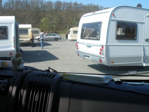 Wohnwagen rund um uns herum eingeparkt werden. Außerdem sind die Blicke, die uns