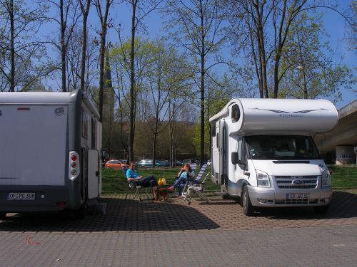 Der Platz ist neu gemacht, ist riesengroß, und liegt gleich vor dem früheren Stellplatz. Sehr schön ists hier, der Main ist nicht weit, und zur Stadt sinds auch nur paar Schritte.