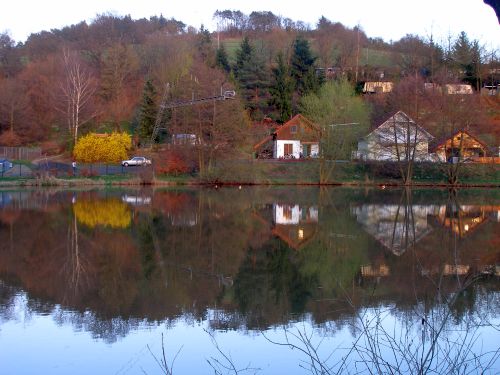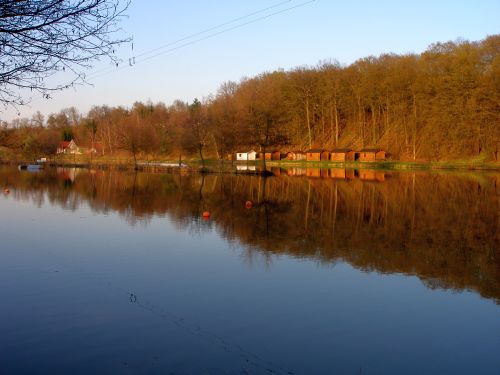 Zum Essen gehen wir in die Gaststätte am See und haben unterwegs in der Abendsonne diesen spiegelnden Ausblick: