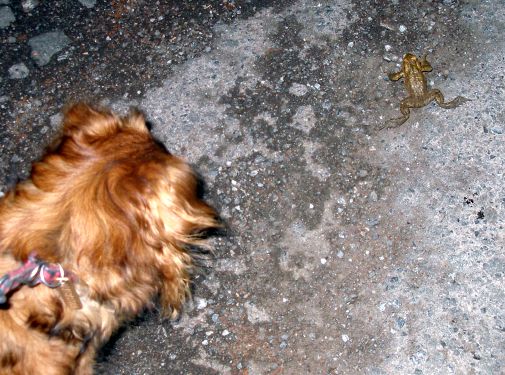 wahrsten Sinne des Wortes eine Krötenwanderung, bei der 4 Menschen und ein Hund