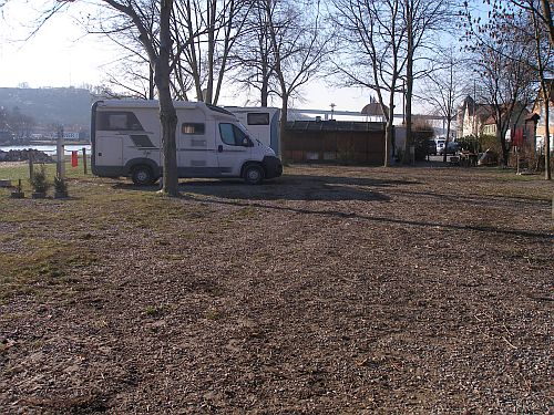 Der Stellplatz stand bis vor kurzem noch vollständig unter Wasser, ist leicht