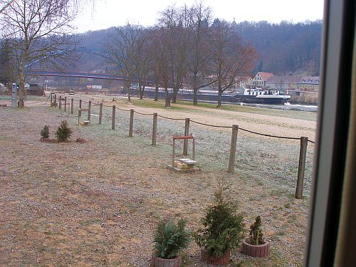 Heute probieren wir unser Weihnachtsgeschenk aus und fahren nach Navi. Ich muss sagen, es nervt weniger als ich dachte. Vielleicht gewöhne ich mich ja doch dran. Kurz vor Segnitz standen wir jedoch vor einem Stadttor mit Durchfahrtshöhe 2,55 m. Wir haben 2,80 m. Also musste ich doch die Landkarte rausholen und einen neuen Weg suchen. Damit war die Dame erst nicht einverstanden, musste sich aber dann doch geschlagen geben und hat sich nach 1 km beruhigt und die neue Route akzeptiert. So sind wir mit den letzten Sonnenstrahlen hier angekommen.