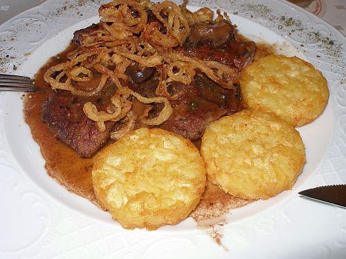 So muss ein anständiger Hamburger aussehen.................... und das sind Känguruh-Medaillons. Lecker wars, und wir können das Lokal guten Gewissens weiterempfehlen.