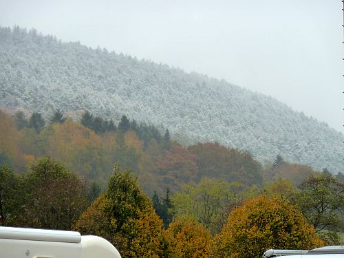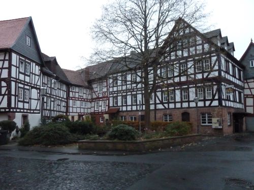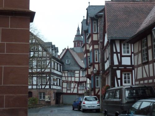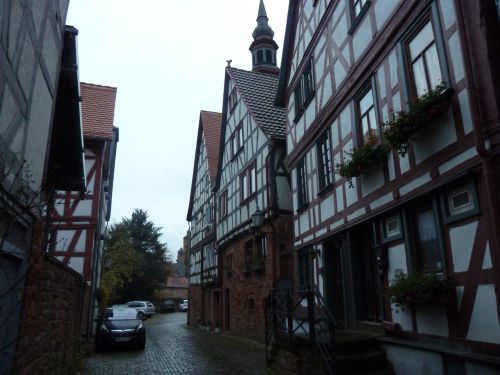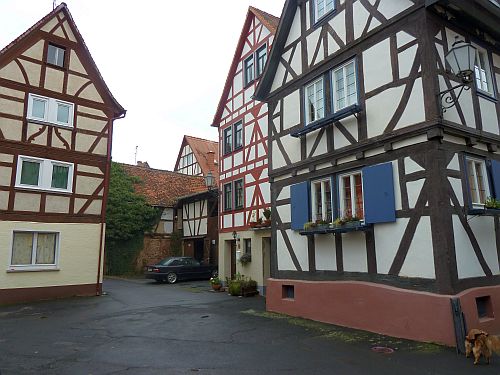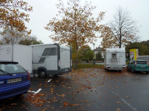 Das Wetter ist mehr als bescheiden, und laut Niederschlagsradar ändert sich daran vorerst nichts, aber wir fahren trotzdem los nach Büdingen. Dort gibts zwei Stellplätze und wir entscheiden uns für den Altstadtparkplatz, denn der am Freibad liegt etwas außerhalb, und wir wollen ja die Stadt anschauen.