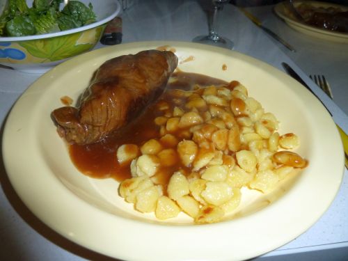 Rouladen mit Knöpfle und Salat. Ich hoffe, dass dies das letzte Ma(h)l ist, das ich vorkochen musste. Ab nächste Woche führe ich meine neuen Beißerchen ins Restaurant aus.