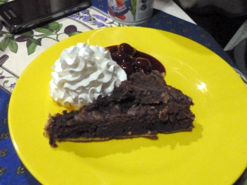 Zum Nachtisch hat Wiebke eine Schokotarte gebastelt, und dazu gabs Kirschgrütze und Schlagsahne.