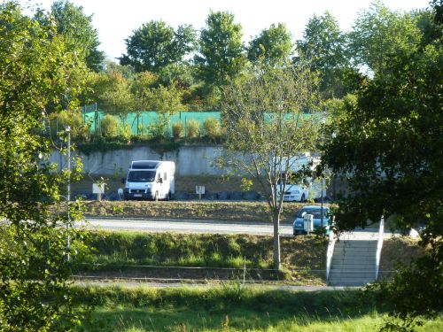 Die Autobahn war recht voll, aber wir habens trotzdem geschafft, die 60 km in einer guten Stunde zu bewältigen. Der Stellplatz liegt am Stadtrand unterhalb des Tennisplatzes und macht einen sehr gepflegten Eindruck.
