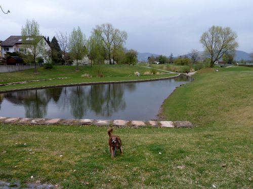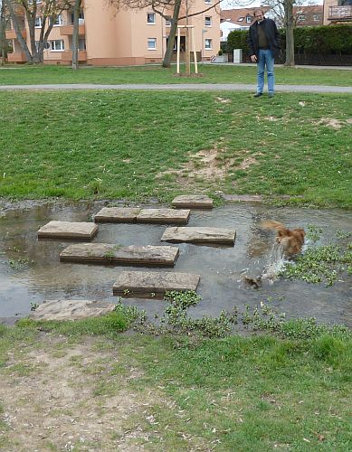Hier haben wir geübt, über die Steine zu hüpfen. Hat er auch prima hingekriegt. Doch beim Test, ob er es alleine schafft, ist er einfach durch den Bach gewetzt.