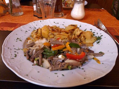 Heute gibts Rinderleber und Rindfleischsalat mit Bratkartoffeln. Passt.