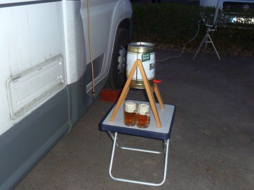 Zwischen den Womos gibts noch ein Bierchen, und dann verziehen wir uns rein ins warme Womo, während draußen im Park die Jugend noch kräftig feiert.